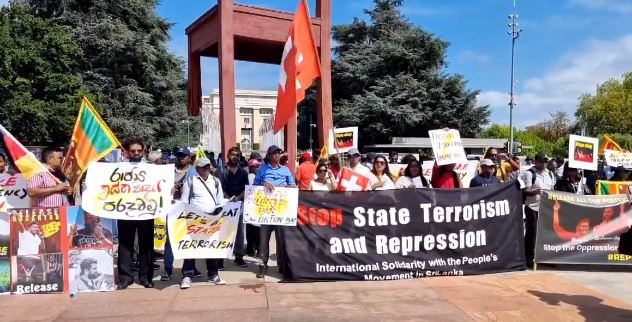 சுவிட்சர்லாந்து – ஜெனீவாவில் உள்ள ஐக்கிய நாடுகளின் மனித உரிமைகள் ஆணைக்குழு தலைமை அலுவலகம் எதிரே அரச அடக்குமுறையை எதிர்த்து அங்குள்ள இலங்கையர்கள் நேற்று போராட்டத்தில் ஈடுபட்டனர். மனித உரிமை மீறல்களில் ஈடுபட்ட ஜனாதிபதி ரணில் விக்கிரமசிங்க, படை அதிகாரிகள், பொலிஸ் அதிகாரிகள், அரசியல்வாதிகளுக்கு எதிராக நடவடிக்கை எடுக்குமாறும் வலியுறுத்தி அவர்கள் கோஷமிட்டனர். இலங்கையில் அரச பயங்கரவாதம் தலைவிரித்து ஆடுவதாகவும் அவர்கள் குற்றஞ்சாட்டினர்.