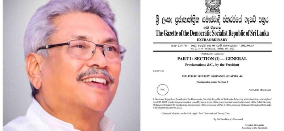 நேற்று(05) நள்ளிரவு முதல் அமுலுக்கு வரும் வகையில், அவசர கால சட்டத்தை நீக்கும் அதிவிசேட வர்த்தமானி அறிவித்தல் ஜனாதிபதி கோட்டாபய ராஜபக்ஸவினால் வெளியிடப்பட்டுள்ளது.