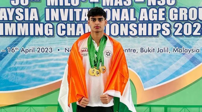 நடிகர் மாதவனின் மகன் வேதாந்த் நீச்சல் போட்டியில் இந்தியாவுக்கு 5 தங்க பதக்கங்களை வென்று கொடுத்துள்ளார்.மலேசியா நாட்டின் தலைநகர் கோலாலம்பூரில் நடப்பு ஆண்டில் நடந்த மலேசியன் இன்விடேசனல் சாம்பியன்ஷிப் போட்டிகளில் நடிகர்மாதவனின் மகன் வேதாந்த் பங்கேற்றார்.