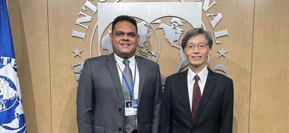 நிதி இராஜாங்க அமைச்சர் ஷெஹான் சேமசிங்க உள்ளிட்ட இலங்கையின் பிரதிநிதிகள் குழு, சர்வதேச நாணய நிதியத்தின்(IMF) பிரதி முகாமைத்துவப் பணிப்பாளர் கெஞ்சி ஒகாமுராவை(Kenji Okamura) சந்தித்துள்ளது.