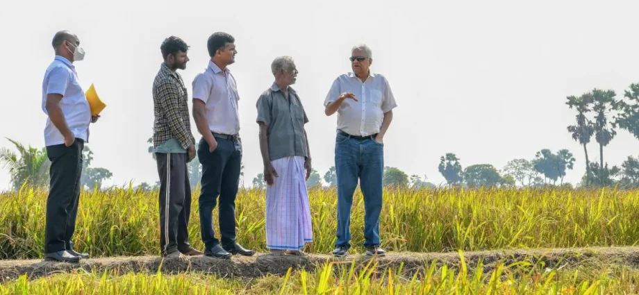 கிளிநொச்சியில் நேற்று(12) நடைபெற்ற நெல் அறுவடை நிகழ்வில் ஜனாதிபதி கலந்துகொண்டிருந்தார். கிளிநொச்சி – பரந்தன் வயல்வெளியில் விவசாயிகளை சந்தித்த ஜனாதிபதி, விவசாயிகளிடம் நெற்செய்கை தொடர்பான பிரச்சினைகளை கேட்டறிந்து கொண்டார்.